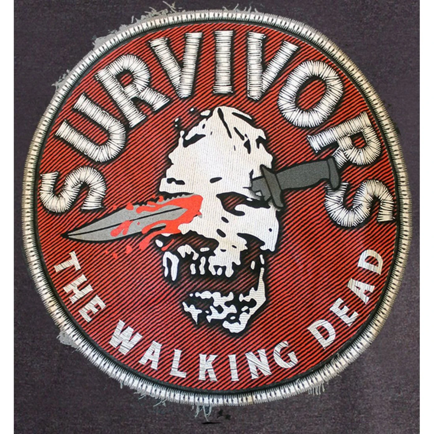 Les survivants de la série Walking Dead sont à retrouver ici sur ce t-shirt sous licence officielle. Sur un fond gris, les survivants sont représentés par leur lutte contre les zombies représentées par un zombie transpercé par un couteau. A manches courtes et col rond, ce t-shirt en coton ne manquera pas d’interpeller les fans de la série par son côté apocalyptique fidèle à l’esprit de la série.