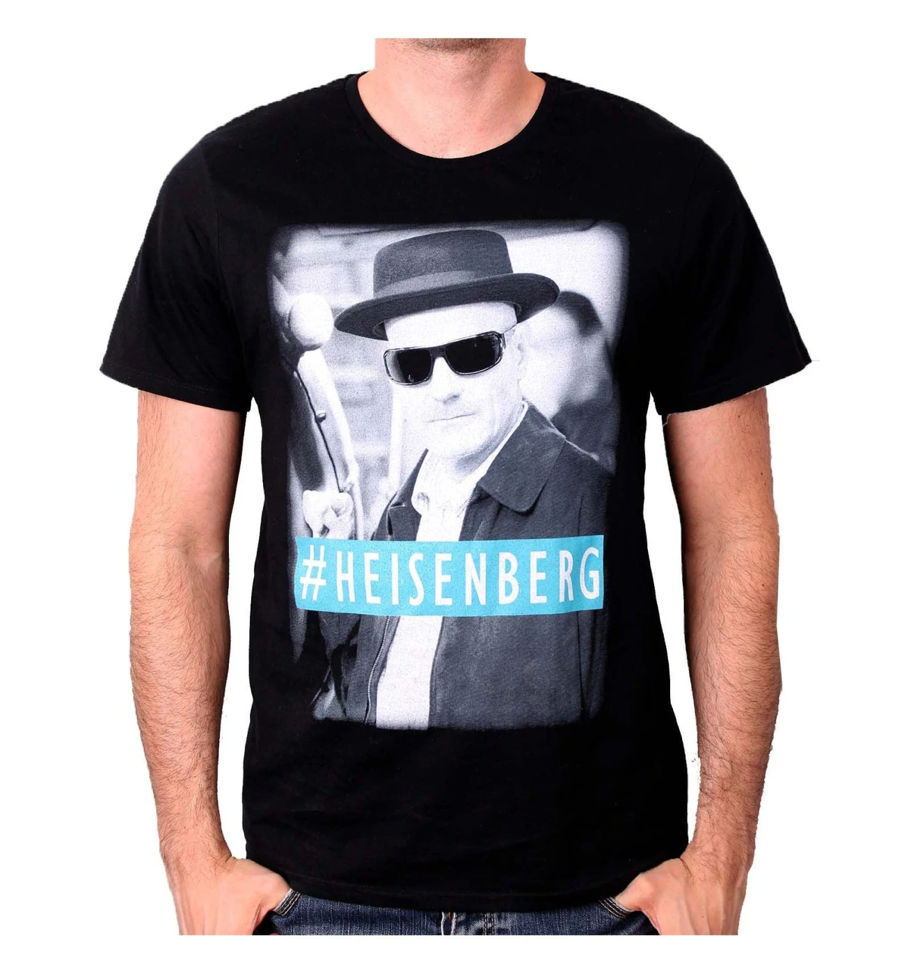 De couleur noire et décoré de l’image du personnage principal, dans son coté le plus sombre, ce tee shirt à manches courtes et à col rond se lave à 30° en programme adapté puisque majoritairement composé de coton. Si vous devez repasser votre tee shirt noir #Heinsenberg Breaking Bad, pensez à le repasser à l’envers, afin de protéger votre transfert de la chaleur du fer.